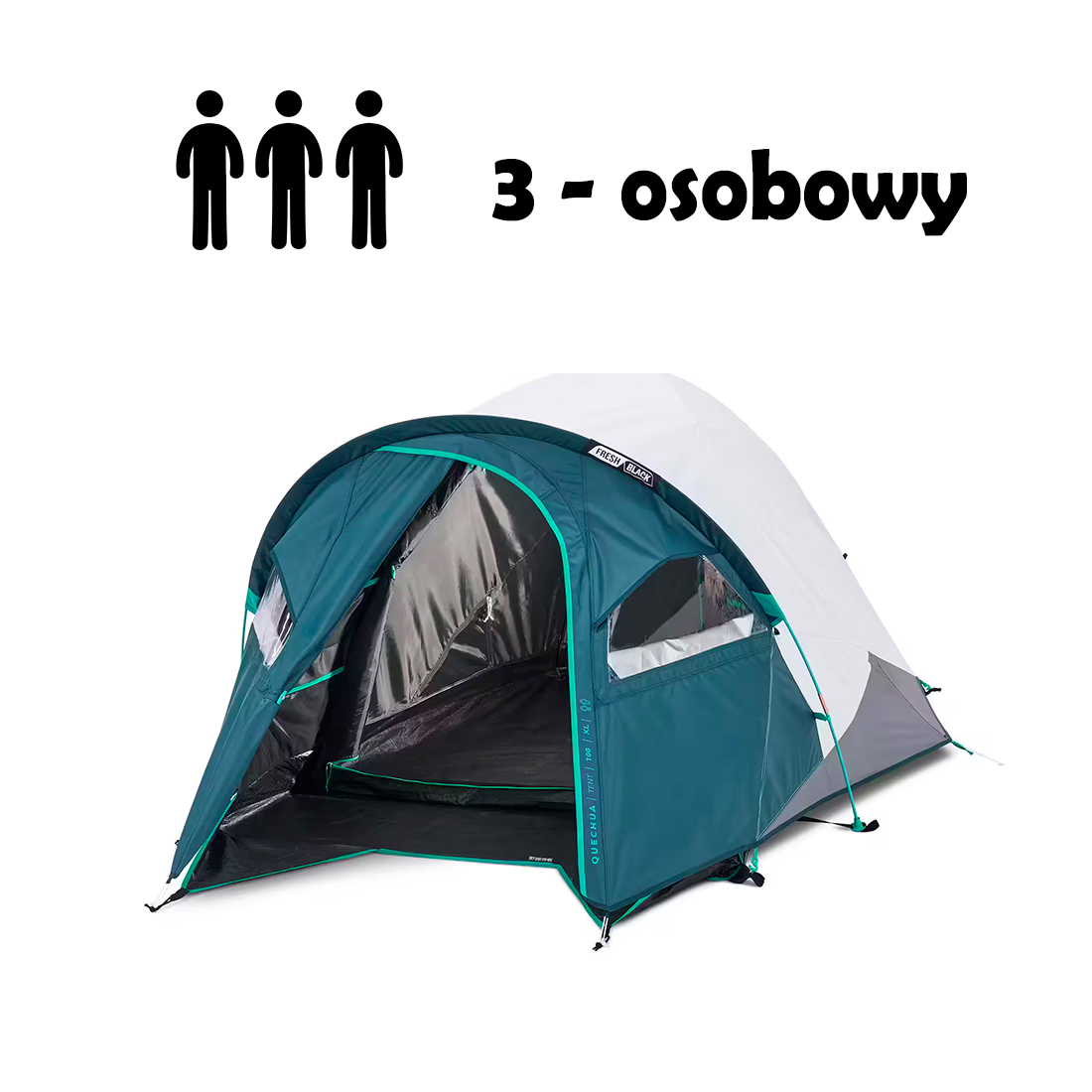 Szukasz przestronnego i wygodnego namiotu dla trzech osób? W naszej wypożyczalni namiotów znajdziesz namiot kempingowy Quechua MH100 XL Fresh&Black, który zapewnia komfortowy sen, skuteczną ochronę przed warunkami atmosferycznymi i łatwość rozstawienia – idealny na biwaki, kempingi, wypady za miasto czy festiwale.
